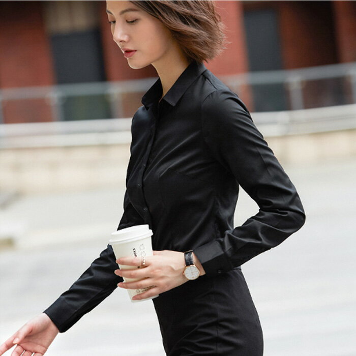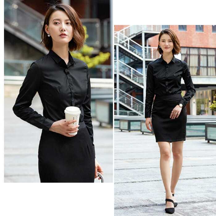 美ライン Yシャツ レディース トップス シャツ・ブラウス ビジネス オフィス Yシャツ フォーマル スーツ リクルート 就活 OL 事務服 演奏会 吹奏楽部 無地 レディースブラウス 長袖ブラック/黒