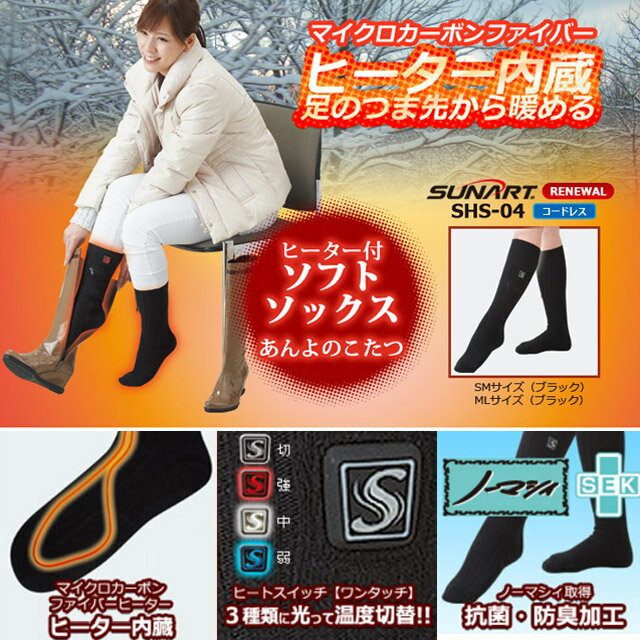●【送料無料】【SUNART/サンアート】SHS-04 ぬくさに首ったけ ソフトソックス・あんよのこたつ マイクロカーボンファイバーヒーター内蔵 【S&M/M&L】【※返品不可※】