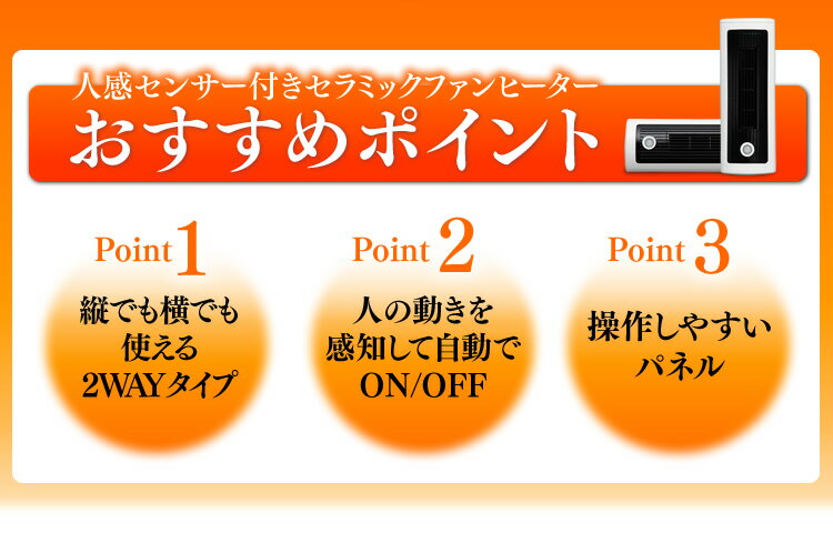 人感センサー付で人の動きを感知して自動でON/OFFする人感センサー付セラミックファンヒーターです♪